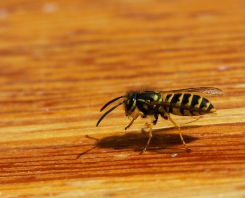 Wespenvraat klinkt misschien als iets uit een horrorfilm, maar eigenlijk is het soorten wespen, zoals de gewone wesp of de Duitse wesp, knagen kleine stukjes hout van oppervlakken zoals gevelbekleding, schuttingen of tuinmeubels.